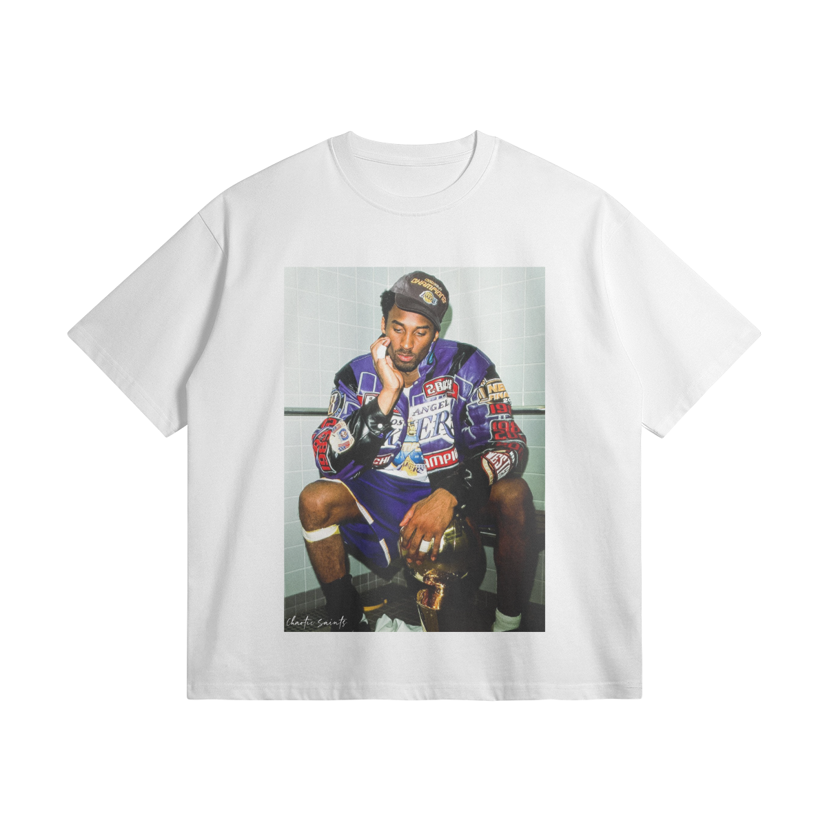 A legendary snapshot of greatness — Kobe Bryant in the locker room, championship secured, trophy in hand. Crafted from heavyweight cotton, this tee captures the essence of Mamba Mentality: sacrifice, triumph, and legacy.